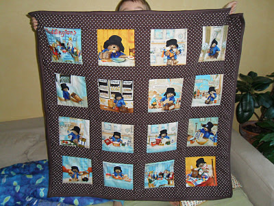 C'est l'histoire de Paddington qui va faire des courses et fait un gâteau pour fêter son anniversaire avec ses amis. En chemin il rencontre des lutins... regardez on aperçoit une tignasse blonde derrière la couverture! les lutins adoptent tout de suite Paddington. Pas fous... ils vont pouvoir se blottir bien au chaud pour écouter de la musique ou lire sur le canapé...