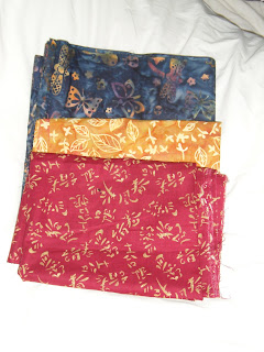 Et enfin mon coup de coeur de la journée: trois superbes coupons de tissu... le bleu est splendide! Je m'étais pourtant promis de ne plus en acheter tant que je n'avais pas un peu vidé mes stocks.