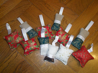 ...mais ceux là ne sont pas pour le calendrier de l'avent. Ils vont partir sur le marché de Noël de l'école maternelle où va ma petite fille, et j'espère finir par s'accrocher dans les sapins du quartier . J'avais peu de temps et du coup je ne suis pas ravie des finitions... Tant pis, c'est pour la bonne cause... Celui de l'an dernier a permis de financer une sortie cinéma.