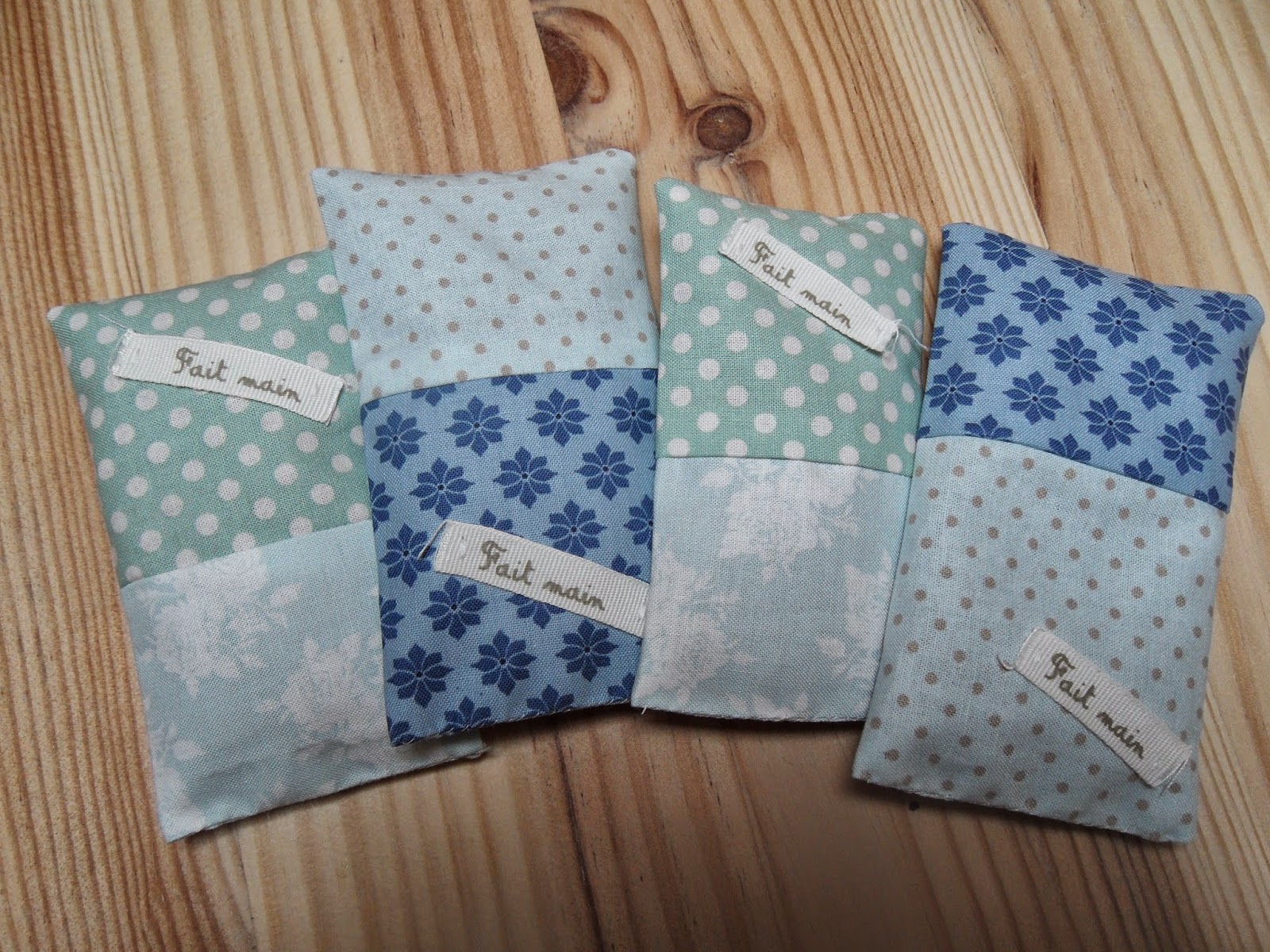 J'ai aussi trouvé un peu de temps pour de la couture... l'an dernier j'avais cueilli quelques brins de lavande dans le jardin de ma belle-maman. Ils ont séché toute l'année dans le garage et voici ce que j'en ai fait pour la Fête des Mères. Ces petits sacs parfumés sont venus compléter le cadeau de ma maman, puis j'en ai bien sûr envoyé deux à ma belle-mère, et enfin les enfants ont choisi chacun le leur, pour parfumer leurs armoires... trop contents!
