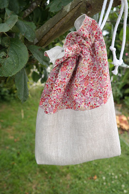 Il me fallait un petit pochon pour ranger ma broderie en cours, j'ai donc cousu celui-ci avec le même lin et un reste de Liberty. Je l'aime beaucoup!